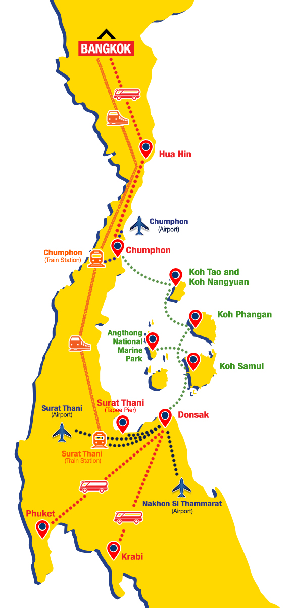 If you are coming from Chumphon, Lomprayah can also take you to Samui, with stops in Koh Tao and Koh Phangan. This will take about 4 hours. Although this sounds long and painful, it might be the ideal option for people whose itinerary starts in Koh Tao or Koh Phangan before staying in Koh Samui.